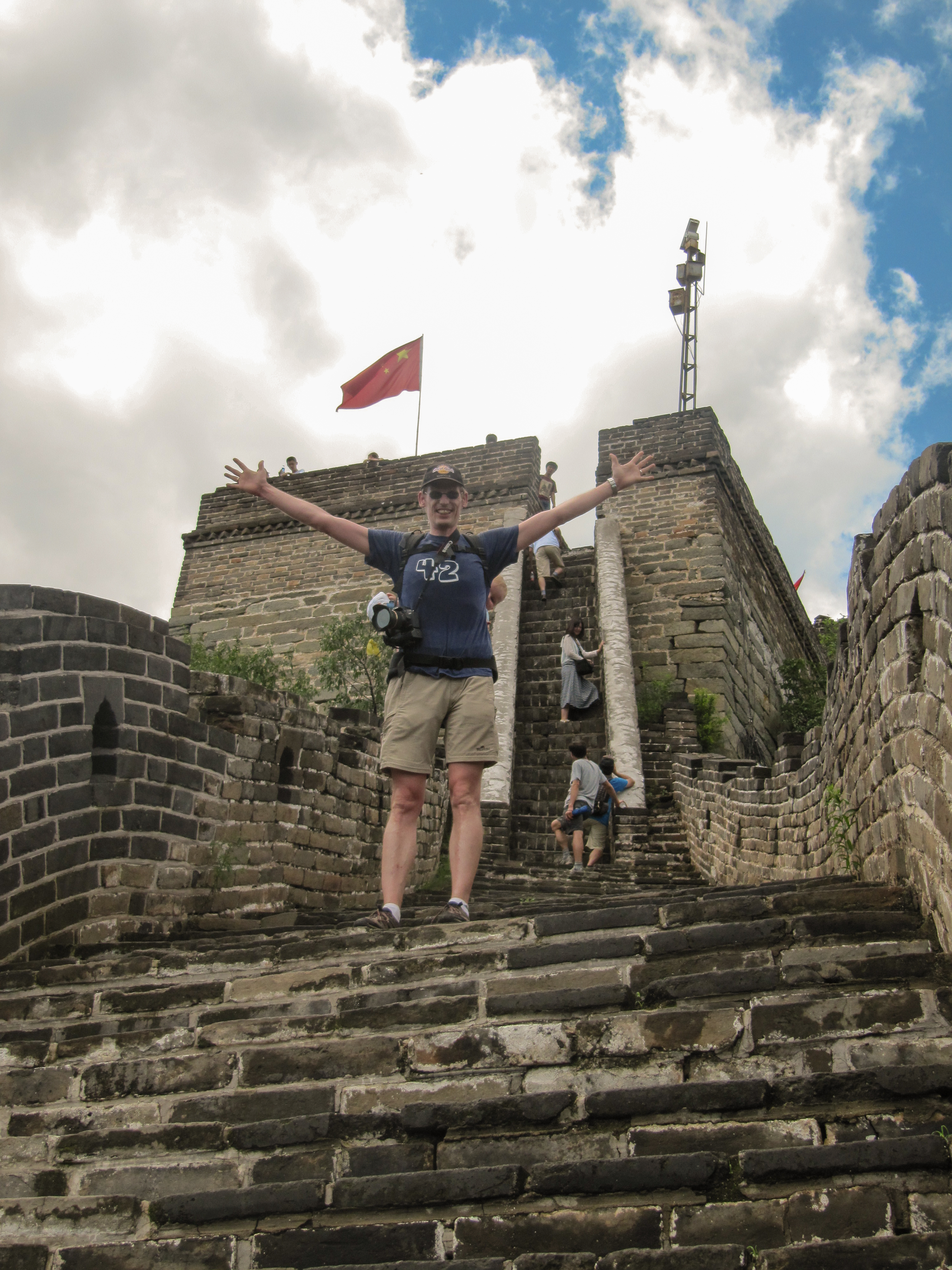 Heute waren wir bei strahlender Sonne und ca. 35° auf der chinesischen Mauer. Und zwar auf dem Teilstück Mutianyu. Wir sind von Turm 14 zu Turm 22 gelaufen. Das letzte Stück war sehr anstrengend, da es viele Stufen bergauf ging.